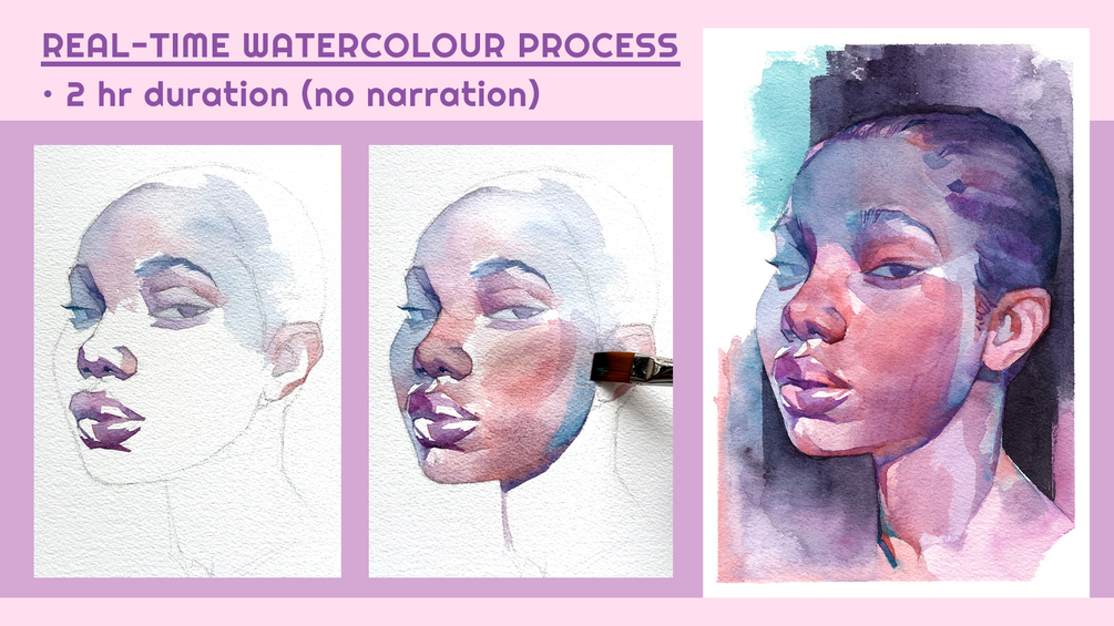 This is a REAL-TIME video (non-narrated, no voice or sound) of my watercolour portrait, showing you my full painting process starting from the sketch to the finish. It is approximately 2 hours long in duration.